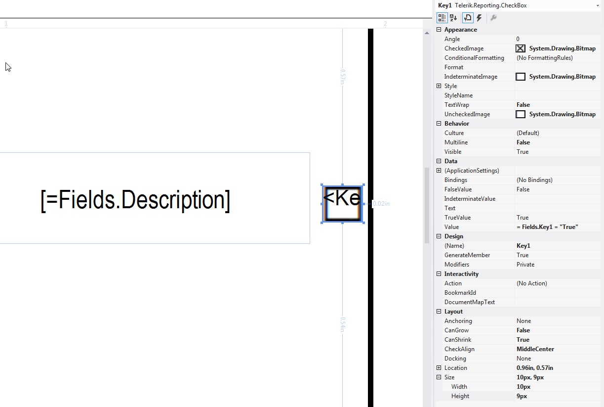 I have a report with multiple checkboxes. The checkboxes look fine inside Visual Studio and inside the Report Viewer. However, when I print the report, the checkboxes do not print at the correct size. It looks like they are expanding to their original size and I am only seeing the top left-hand corner. I tried to use the default images and I also created my own checkbox images and it does not seem to make any difference. Please let me know if there is a value that I am not setting correctly or if there is something else I need to do in order for these checkboxes to print correctly.