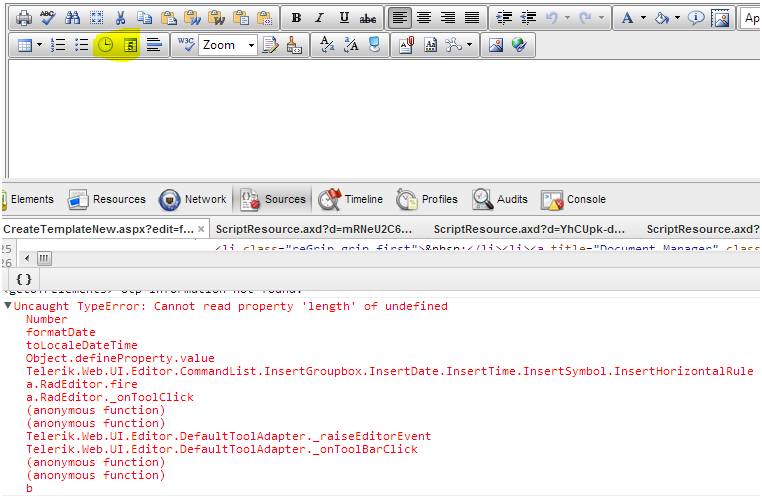When I click on Time / Date control from Editor, Its not showing in the content editor but it thorws Script error.This happens only on Chrome.