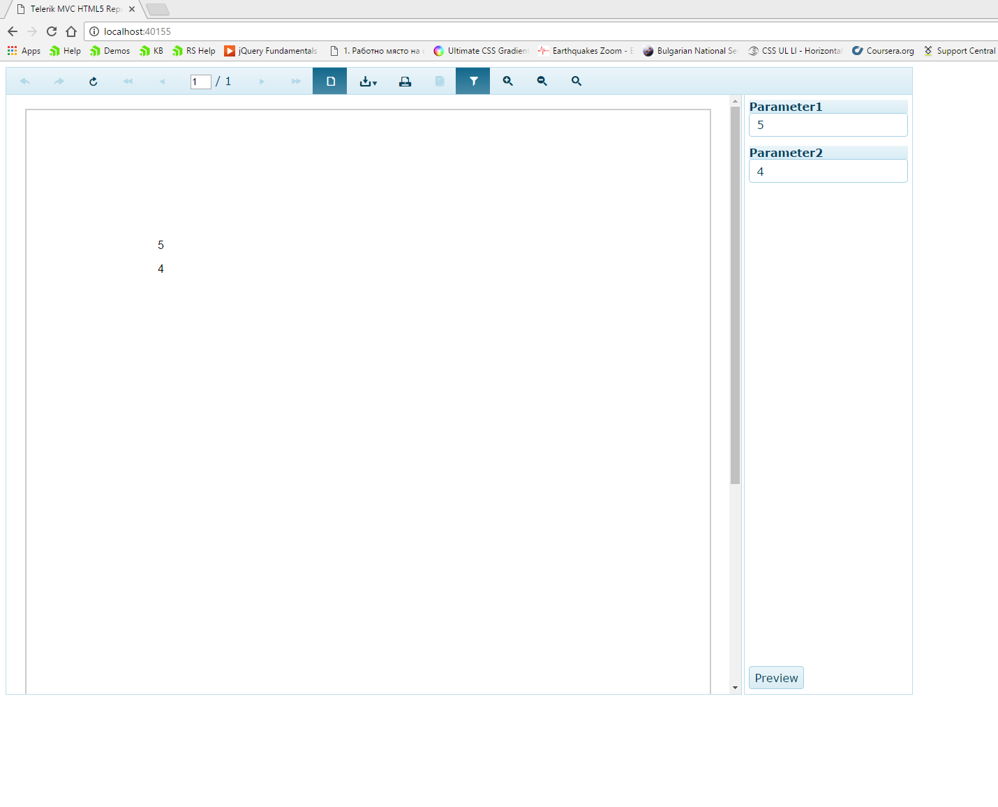 @using AllowNullCheck@{ Layout = null;}<!DOCTYPE html><html xmlns="http://www.w3.org/1999/xhtml"><head> <title>Telerik MVC HTML5 Report Viewer</title> <meta http-equiv="X-UA-Compatible" content="IE=edge"> <meta name="viewport" content="width=device-width, initial-scale=1, maximum-scale=1" /> <script src="http://kendo.cdn.telerik.com/2016.3.914/js/jquery.min.js"></script> <link href="http://kendo.cdn.telerik.com/2016.3.914/styles/kendo.common.min.css" rel="stylesheet" /> <link href="http://kendo.cdn.telerik.com/2016.3.914/styles/kendo.blueopal.min.css" rel="stylesheet" /> <script src="http://kendo.cdn.telerik.com/2016.3.914/js/kendo.all.min.js"></script> <style> #reportViewer1 { position: relative; width: 1300px; height: 900px; font-family: Verdana, Arial; } </style> <script src="@Url.Content("~/ReportViewer/js/telerikReportViewer-10.2.16.1025.min.js")"></script></head><body>@(Html.TelerikReporting().ReportViewer() .Id("reportViewer1") .ServiceUrl(Url.Content("/api/reports")) .ReportSource(new TypeReportSource() { TypeName = typeof(AllowNullCheck.Reports.Report1).AssemblyQualifiedName }) .ViewMode(ViewMode.PrintPreview) .ScaleMode(ScaleMode.Specific) .Scale(1.2) .PersistSession(false) .PrintMode(PrintMode.ForcePDFPlugin))</body></html>Let us know how to modify the code snippet to reproduce the problem. Feel free to open a support ticket and send us a demo project in a ZIP file.
