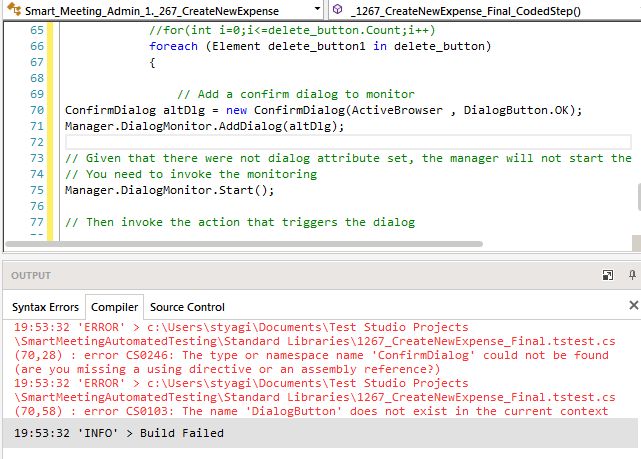 1. The type or namespace name 'ConfirmDialog' could not be found (are you missing a using directive or an assembly reference?)