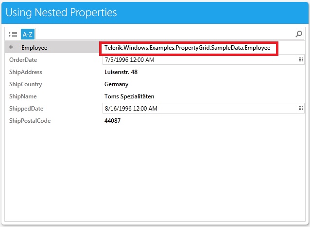 private void RadPropertyGrid_AutoGeneratingPropertyDefinition(object sender, Telerik.Windows.Controls.Data.PropertyGrid.AutoGeneratingPropertyDefinitionEventArgs e) { if (e.PropertyDefinition.SourceProperty.PropertyType.IsClass && !e.PropertyDefinition.SourceProperty.PropertyType.IsSealed) { e.PropertyDefinition.EditorTemplate = new DataTemplate(); } }Regards,