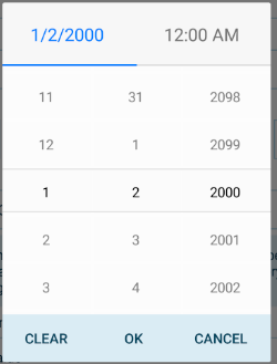 01.<ControlTemplate x:Key="PickerFooterTemplate">02. <StackLayout Orientation="Horizontal"03. Spacing="0"04. HorizontalOptions="FillAndExpand"05. BackgroundColor="{StaticResource SecondaryButtonColor}">06. <Button Text="Clear"07. TextColor="{StaticResource TextColor}"08. BackgroundColor="Transparent"09. -->Command="{Binding Source={RelativeSource FindAncestor, AncestorType={x:Type telerik:RadDateTimePicker}, AncestorLevel=1}, Path=ClearCommand}" />10. <Button Text="{TemplateBinding AcceptButtonText}"11. TextColor="{StaticResource TextColor}"12. BackgroundColor="Transparent"13. Command="{TemplateBinding AcceptCommand}" />14. <Button Text="{TemplateBinding CancelButtonText}"15. TextColor="{StaticResource TextColor}"16. BackgroundColor="Transparent"17. Command="{TemplateBinding CancelCommand}" />18. </StackLayout>19.</ControlTemplate>