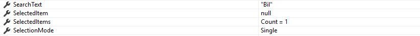 But this does not happen as expected for SearchBox2. Instead, it seems to have made an aborted attempt to clear itself, as per AutoCompleteBox2.jpg. Note how the SelectedItem value for SearchBox2 has been nullified, as intended, but it retains 1 record in its SelectedItems list, and also note how its SearchText, which is set to "Bil", should in fact be "Billy Joel", which is what still appears in the Search Box.