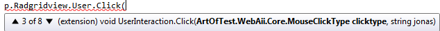 public static void Click(this UserInteraction user, ArtOfTest.WebAii.Core.MouseClickType clicktype)