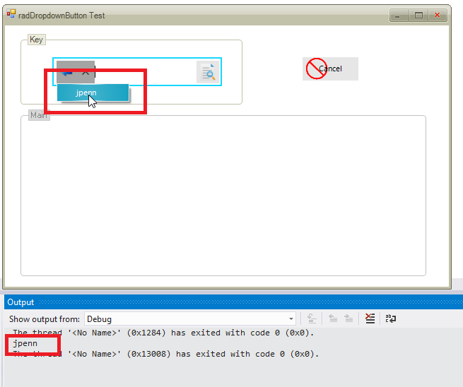 The RadSplitButton contains previously entered data in the TextBox. The textbox is a Key field for the form, so the radSplitbutton would be perfect for this use if I can get it to work.