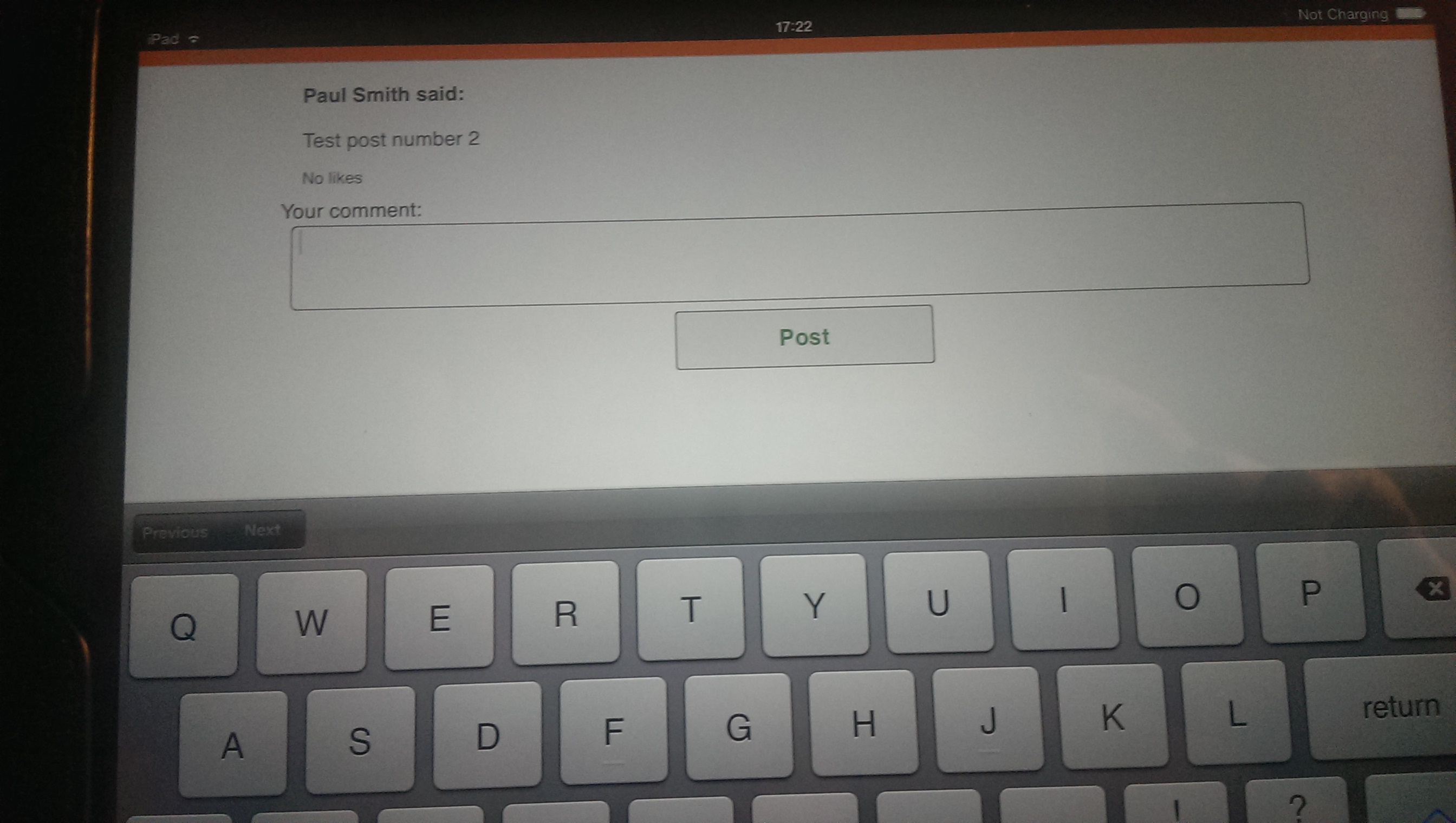 #5 - after: PROBLEM - the text area is *below* the keyboard and not focused
