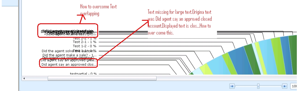 When binding data to chart series as in the obove example i have posted.If my data source is having more of rows some of adjacent slices names of the chart are overlapped and also some text is missing for large text.