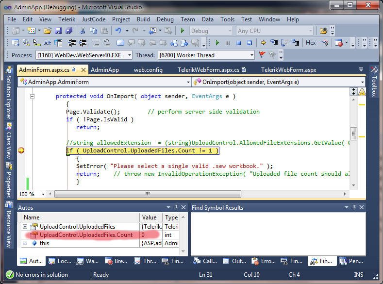 To clarify: It is NOT the postback from the upload control that is a problem for me. The problem is when handling the click on the "Import" button - at that time, the upload control reports that it has no files - even though the web page *appears* to have a file in the control.