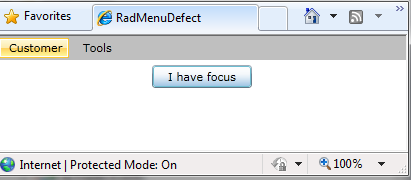 I'm setting ClickToOpen=True and when a Menu is open and a Menu Item is clicked the Focused visual state on the TopLevelHeaderTemplate does not appear to get reset - so it looks as though the menu button is pressed (the menu is closing fine however). Please see attached.