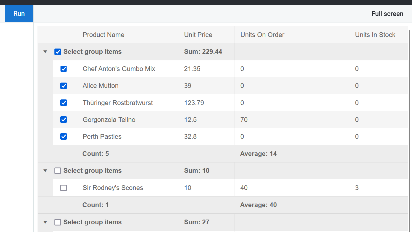 I have been trying to get it so when I check the group header check box it will automatically check all the rows within the header.