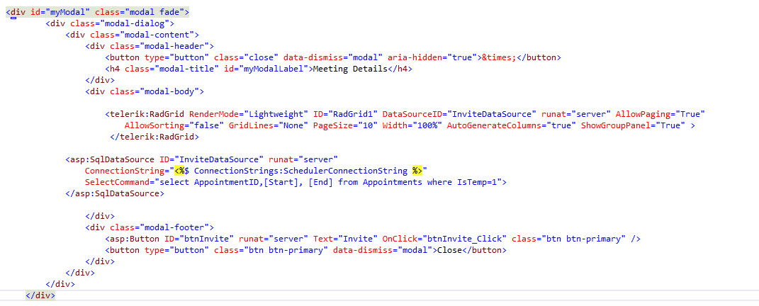 Please find attached image for my script. (I am using SqlDataSource for radGrid)