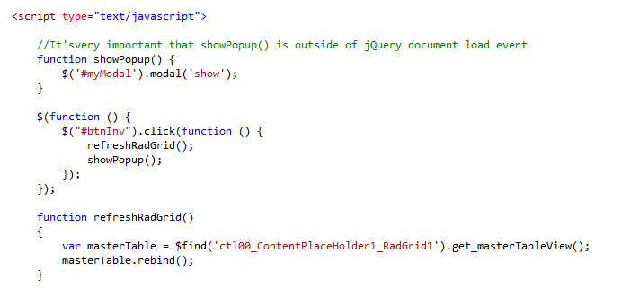 I am using RadGrid on modal-dialog, it is working fine after page load.