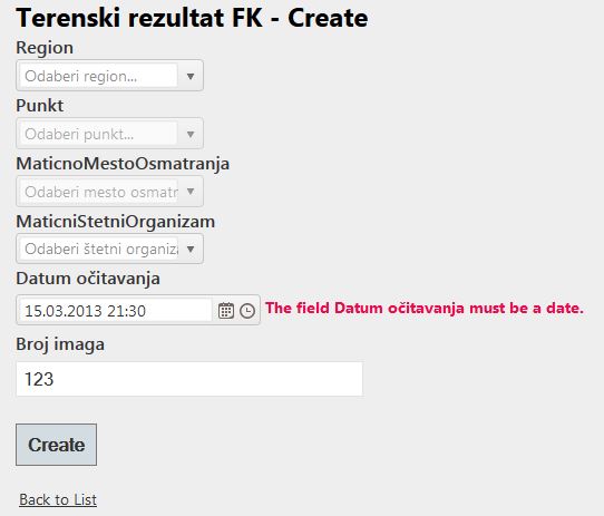 I have problem with client-side validation. Even after I set Culture and it shows proper date format, when I submit page client-side validation fires error "The field Datum očitavanja must be a date.". Here is my code in view:
