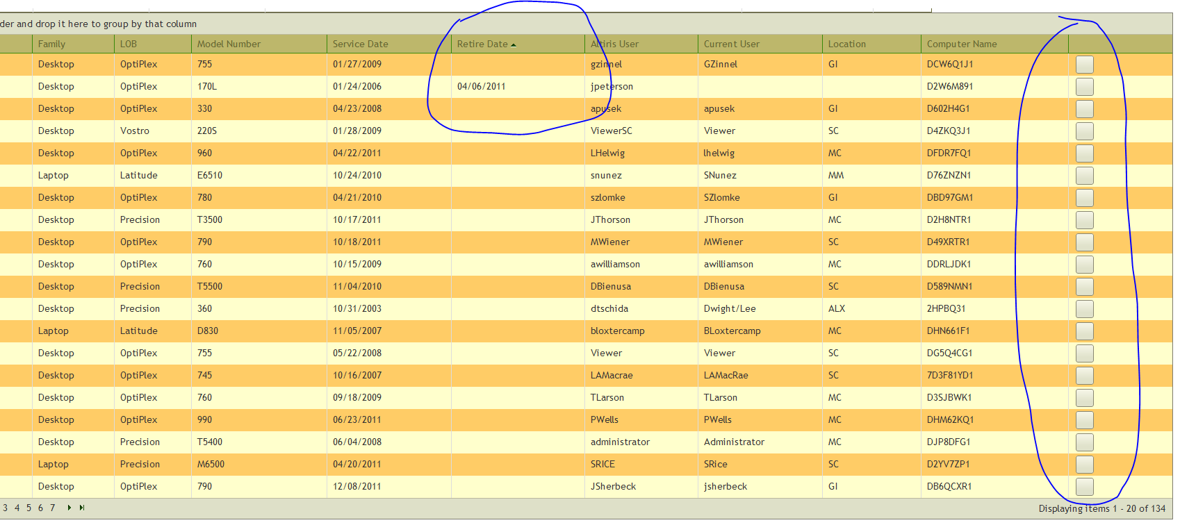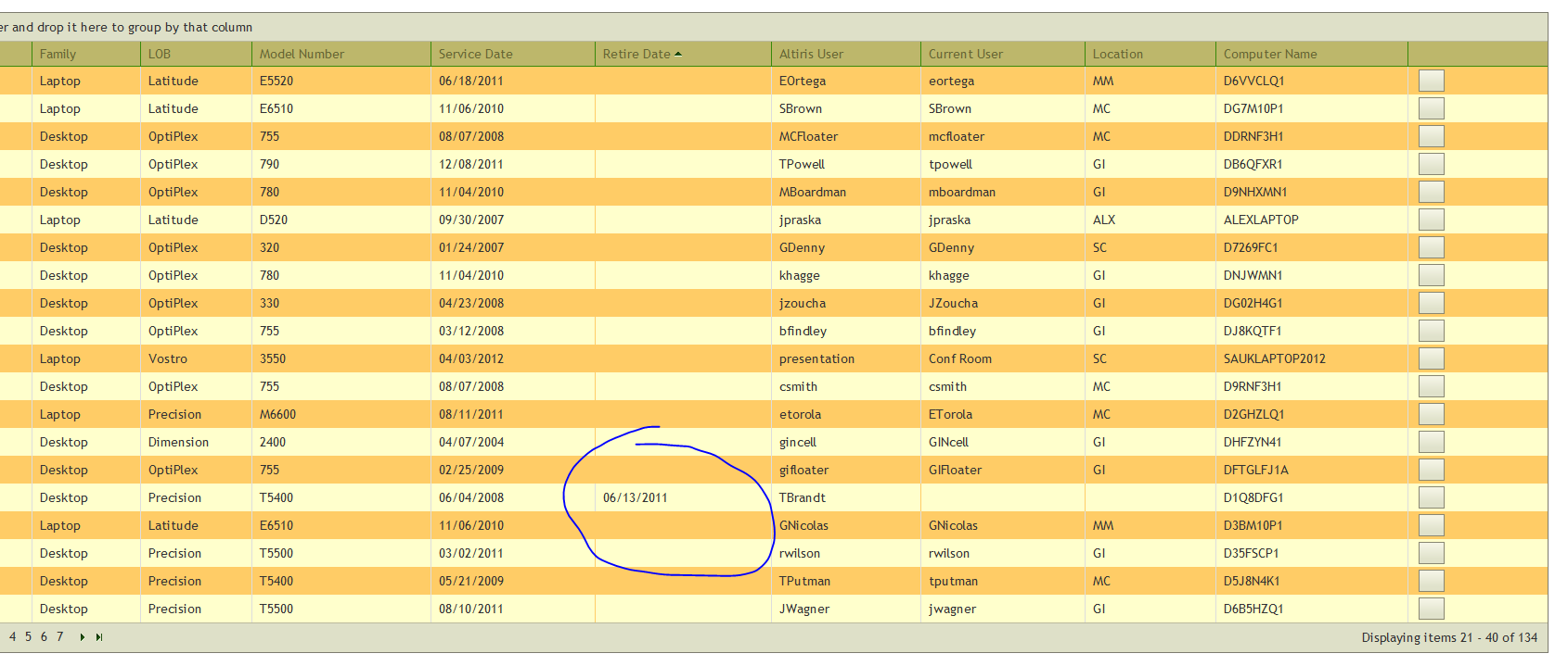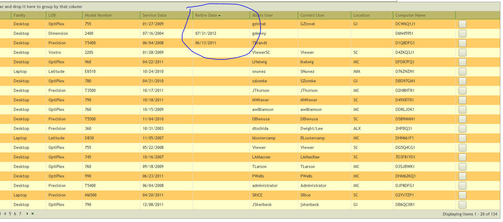 @(Html.Telerik().Grid(Model).Name("DellGrid").DataKeys(keys => keys.Add(m => m.ServiceTag)).DataBinding(dataBinding => dataBinding.Ajax() .OperationMode(GridOperationMode.Client) .Select("Index", "DellSystem") .Update("Edit", "DellSystem")).Columns(columns =>{ columns.Bound(m => m.ServiceTag) .Title("Service Tag"); columns.Bound(m => m.Family) .Title("Family"); columns.Bound(m => m.LOB) .Title("LOB"); columns.Bound(m => m.ModelNumber) .Title("Model Number"); columns.Bound(m => m.ServiceDate) .Title("Service Date"); columns.Bound(m => m.RetireDate) .Title("Retire Date"); columns.Bound(m => m.User) .Title("Altiris User"); columns.Bound(m => m.CurrentUser) .Title("Current User"); columns.Bound(m => m.Whse) .Title("Location"); columns.Bound(m => m.Name) .Title("Computer Name"); columns.Command(commands => { commands.Custom("Edit").ButtonType(GridButtonType.Image) .ImageHtmlAttributes(new { @class = "t-icon t-edit" }) .Text("Edit") .Action("Edit", "DellSystem"); }).Width(150);}) .Groupable() .Sortable() .Pageable(page => page.PageSize(20)))Also, when you sort a column, the ImageHtmlAttributes section seems to be lost as I lose my icon for the edit button: