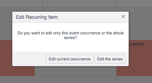 However I am facing the issue of handling recurring events. I need the option of whether to change the series or the current instance only. Is there some way to open the dialog window asking to "edit current event" or "edit series" manually and handling the user action accordingly?