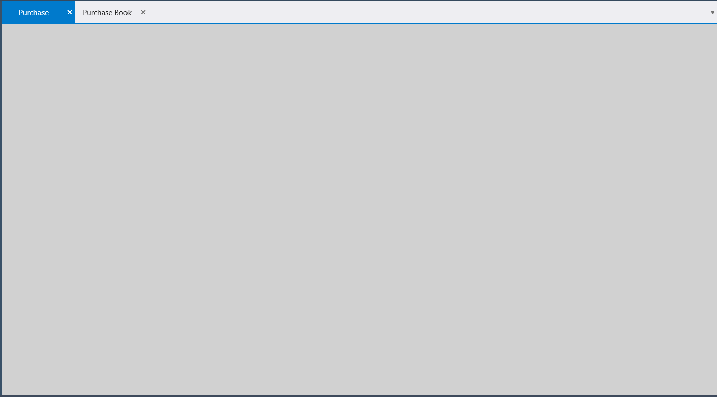 <telerik:RadTabControl Background="#FFD1D1D1" telerik:StyleManager.Theme="VisualStudio2013" x:Name="radTabControlUC" HorizontalAlignment="Stretch" VerticalAlignment="Stretch" DropDownDisplayMode="Visible" AllowDragReorder="True" ScrollMode="Item" CloseTabsOnMouseMiddleButtonDown="True" Visibility="Visible"> <telerik:RadTabItem BorderThickness="1" BorderBrush="#FFE0E0E0" x:Name="RadTabItemPurchase" Header="Purchase" Height="45" Width="145" FontSize="15" CloseButtonVisibility="Visible" > <Viewbox HorizontalAlignment="Stretch" Stretch="Fill" VerticalAlignment="Stretch" > <ContentControl> <Grid Name="grdUCPurchase" Background="White"> <Grid.RowDefinitions> <RowDefinition Height="Auto"/> <RowDefinition Height="*"/> </Grid.RowDefinitions> <DockPanel x:Name="ContentArea" Grid.Row="1" /> </Grid> </ContentControl> </Viewbox> </telerik:RadTabItem> <telerik:RadTabItem BorderThickness="1" BorderBrush="#FFE0E0E0" x:Name="RadTabItemCriteria" Header="Purchase Book" Height="45" Width="145" FontSize="15" CloseButtonVisibility="Visible" > <Viewbox HorizontalAlignment="Stretch" Stretch="Fill" VerticalAlignment="Stretch" > <ContentControl> <Grid Name="grdUCCriteria" Background="White"> <Grid.RowDefinitions> <RowDefinition Height="Auto"/> <RowDefinition Height="*"/> </Grid.RowDefinitions> <DockPanel x:Name="ContentCriteria" Grid.Row="1" /> </Grid> </ContentControl> </Viewbox> </telerik:RadTabItem> </telerik:RadTabControl>