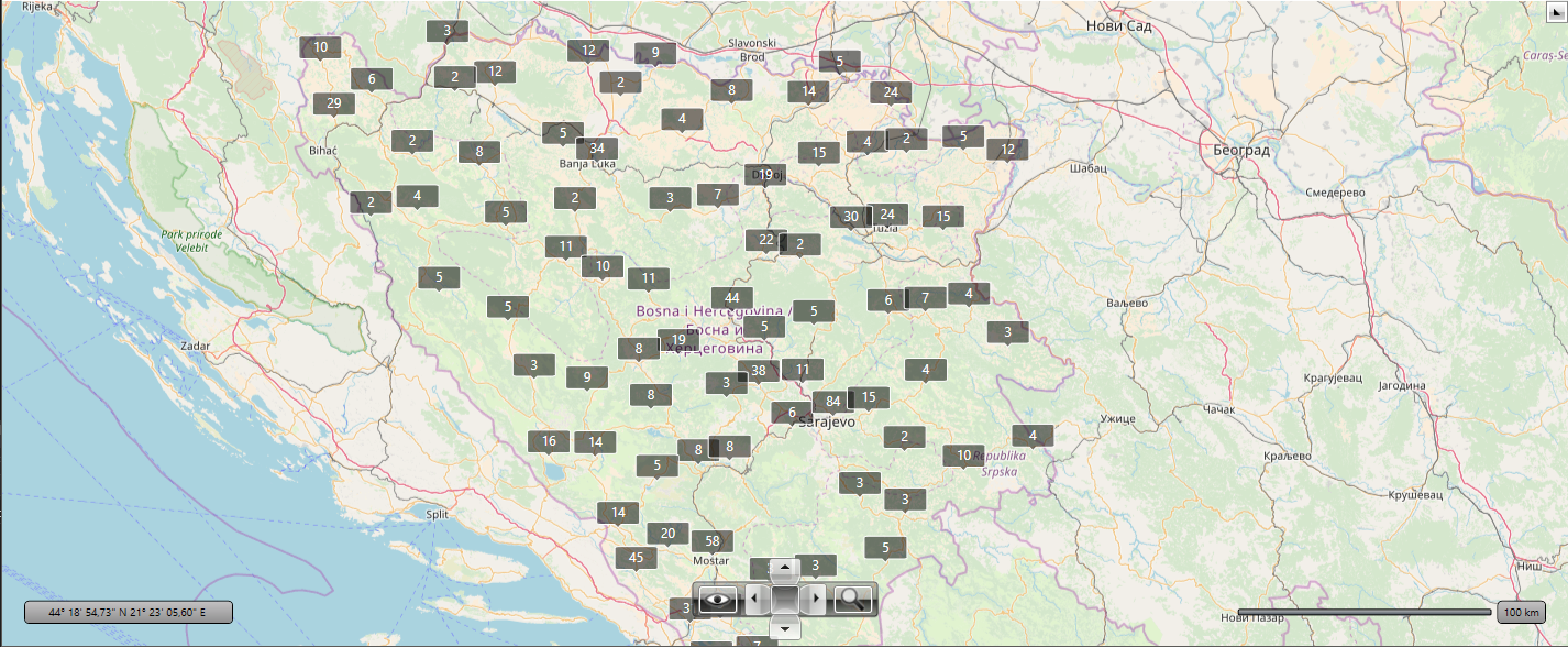 /// <summary> /// Gets or sets array of the doubles which define close distance /// between 2 locations in degrees for every zoom level. /// </summary> /// <remarks>If distance between 2 locations for the given zoom level is /// less than value in the array, then we consider these 2 locations as close ones. /// Close locations should be combined into 1 cluster.</remarks> public double[] CloseDistance { get { return this.closeDistance; } set { this.closeDistance = value; } }/// <summary> /// Detects whether given original data item belongs to the region of the specified cluster. /// </summary> /// <param name="cluster">Cluster.</param> /// <param name="info">Map object information.</param> /// <param name="zoomLevel">Zoom level.</param> /// <returns>true - if data item belongs to the region of the specified cluster.</returns> public virtual bool IsItemInClusterRegion(ClusterData cluster, MapObjectInfo info, int zoomLevel) { Location itemLocation = this.Layer.GetLocationFromInfo(info); bool isClose = false; if (zoomLevel > 0) { double width = Math.Abs(cluster.Location.Longitude - itemLocation.Longitude); double height = Math.Abs(cluster.Location.Latitude - itemLocation.Latitude); isClose = width < this.closeDistance[zoomLevel - 1] && height < this.closeDistance[zoomLevel - 1]; } return isClose; }In future, we will aim at describing this generator in our documentation.