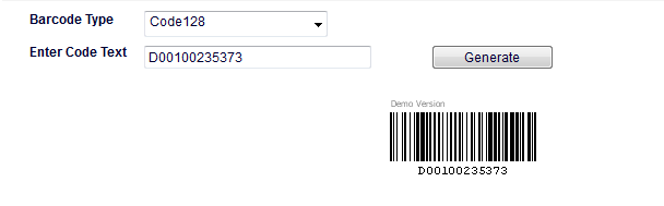 When I go to this site and select barcode type 128 and put D00100235373 in the Enter Code Text it generates the barcode exactly the way I want. Meaning it looks exactly the same as the bar on a document I am replacing.