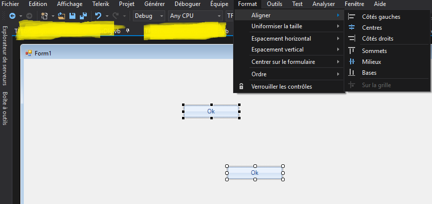 I'm trying to get the code behind the formatting menu for forms like aligning, uniforming the size, spacing (vertically, horizontally).. Because I have my own application with forms and I need to control them like I can do it with Visual Studio.