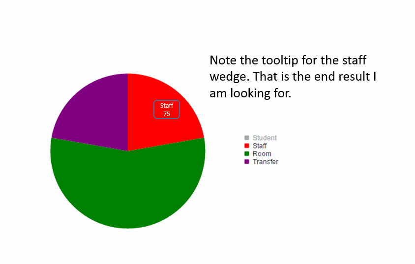 public void buildChart() { PieSeries pieSeries1 = new PieSeries(); pieSeries1.Name = "Chart"; pieSeries1.LabelsAppearance.Visible = false; pieSeries1.TooltipsAppearance.Color = System.Drawing.Color.White; pieSeries1.TooltipsAppearance.DataFormatString = "???????????"; // What I need in the template is the series name and then the value somethin like this: #=dataItem.Name#<br />#=dataItem.Valu# pieSeries1.SeriesItems.Add(10, Color.Yellow, "Student"); pieSeries1.SeriesItems[0].Visible = false; pieSeries1.SeriesItems.Add(20, Color.Red, "Staff"); pieSeries1.SeriesItems.Add(50, Color.Green, "Room"); pieSeries1.SeriesItems.Add(20, Color.Purple, "Transfer"); RadHtmlChart1.PlotArea.Series.Add(pieSeries1); } protected void Page_Load(object sender, EventArgs e) { buildChart(); }