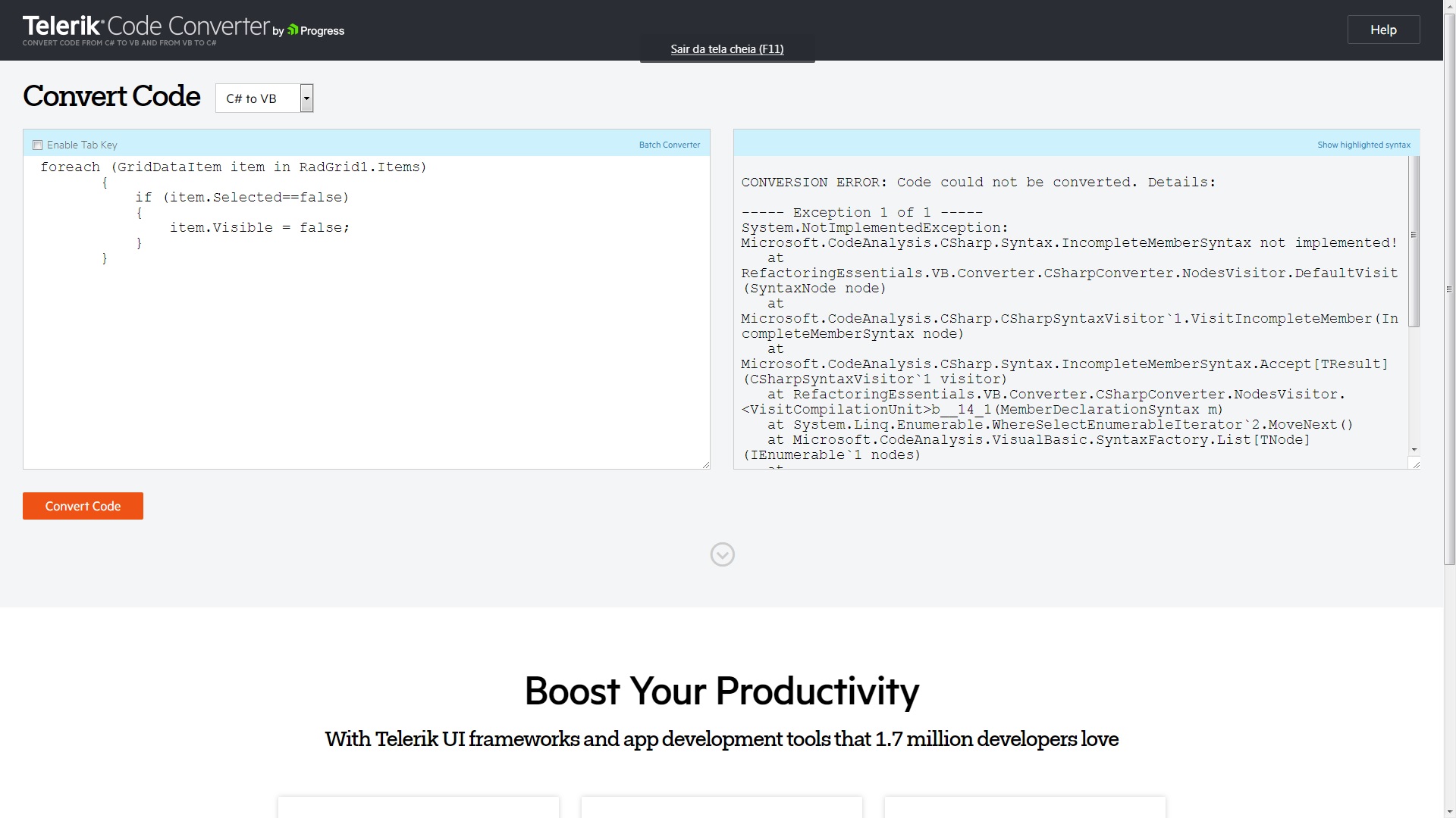 If you experience any other problems with the converter, please, post them to the Code Converter Ideas & Feedback Portal so that everyone can vote and the bug items can be prioritized.