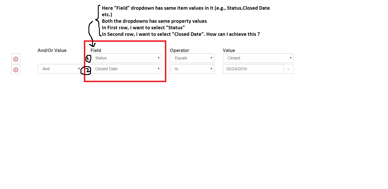 Both the drop-downs are on same page and they have got same properties and list item values.(Image Attachment Included)