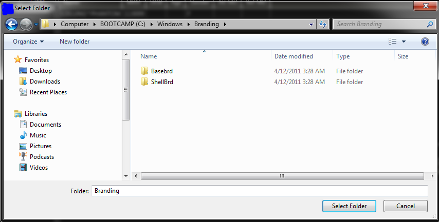 System.Windows.Forms.FolderBrowserDialog dlg = new System.Windows.Forms.FolderBrowserDialog();dlg.ShowNewFolderButton = false;dlg.SelectedPath = GetDefaultDirectory();dlg.ShowDialog()Any help would be appreciated!