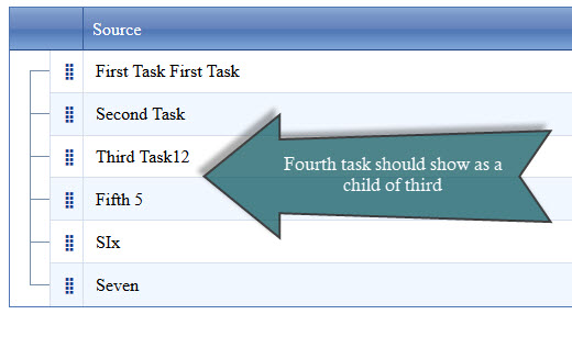 <html><head> <title>Test</title> </head><body> <form id="Form1" runat="server"> <asp:ScriptManager runat="server" ID="ScriptManager1"> </asp:ScriptManager> <telerik:RadTreeList runat="server" ID="RadTreeListProjectTasks" Skin="Web20" DataSourceID="SqlDataSource1" DataKeyNames="TaskProjectDetailId" ParentDataKeyNames="ParentTaskProjectDetailId" AutoGenerateColumns="false" Width="100%"> <ClientSettings AllowItemsDragDrop="true"> <Selecting AllowItemSelection="true" /> </ClientSettings> <Columns> <%--hidden columns for updating emails in user control--%> <telerik:TreeListBoundColumn UniqueName="TaskProjectDetailId" DataField="TaskProjectDetailId" Display="false" /> <telerik:TreeListBoundColumn UniqueName="ParentTaskProjectDetailId" DataField="ParentTaskProjectDetailId" Display="false" /> <telerik:TreeListBoundColumn UniqueName="UserProfileId" DataField="UserProfileId" Display="false" /> <telerik:TreeListDragDropColumn UniqueName="TreeListDragDropColumn" HeaderStyle-Width="30px"> </telerik:TreeListDragDropColumn> <telerik:TreeListTemplateColumn HeaderText="Source" DataField="Subject"> <ItemTemplate> <table class="templateTable" width="400px"> <tr> <td class="templateHeader"> <asp:Label ID="Subject" runat="server" Text='<%# Bind("Subject") %>'></asp:Label> <asp:Label ID="Description" runat="server" Text='<%# Bind("Description") %>'></asp:Label> </td> </tr> </table> </ItemTemplate> </telerik:TreeListTemplateColumn> </Columns> </telerik:RadTreeList> <asp:SqlDataSource ID="SqlDataSource1" runat="server" ConnectionString="<%$ ConnectionStrings:TestDbConnectionString %>" UpdateCommand="UPDATE [_TasksProjectDetailTBL] SET [ParentTaskProjectDetailId]=@ParentTaskProjectDetailId WHERE [TaskProjectDetailId] = @TaskProjectDetailId" SelectCommand="SELECT * FROM [_TasksProjectDetailTBL] TPD WHERE [TPD].TaskProjectMasterId IN (1)"> <UpdateParameters> <asp:Parameter Name="TaskProjectDetailIdParentId" Type="Int16"></asp:Parameter> <asp:Parameter Name="TaskProjectDetailId" Type="Int64"></asp:Parameter> </UpdateParameters> </asp:SqlDataSource> </form></body></html>