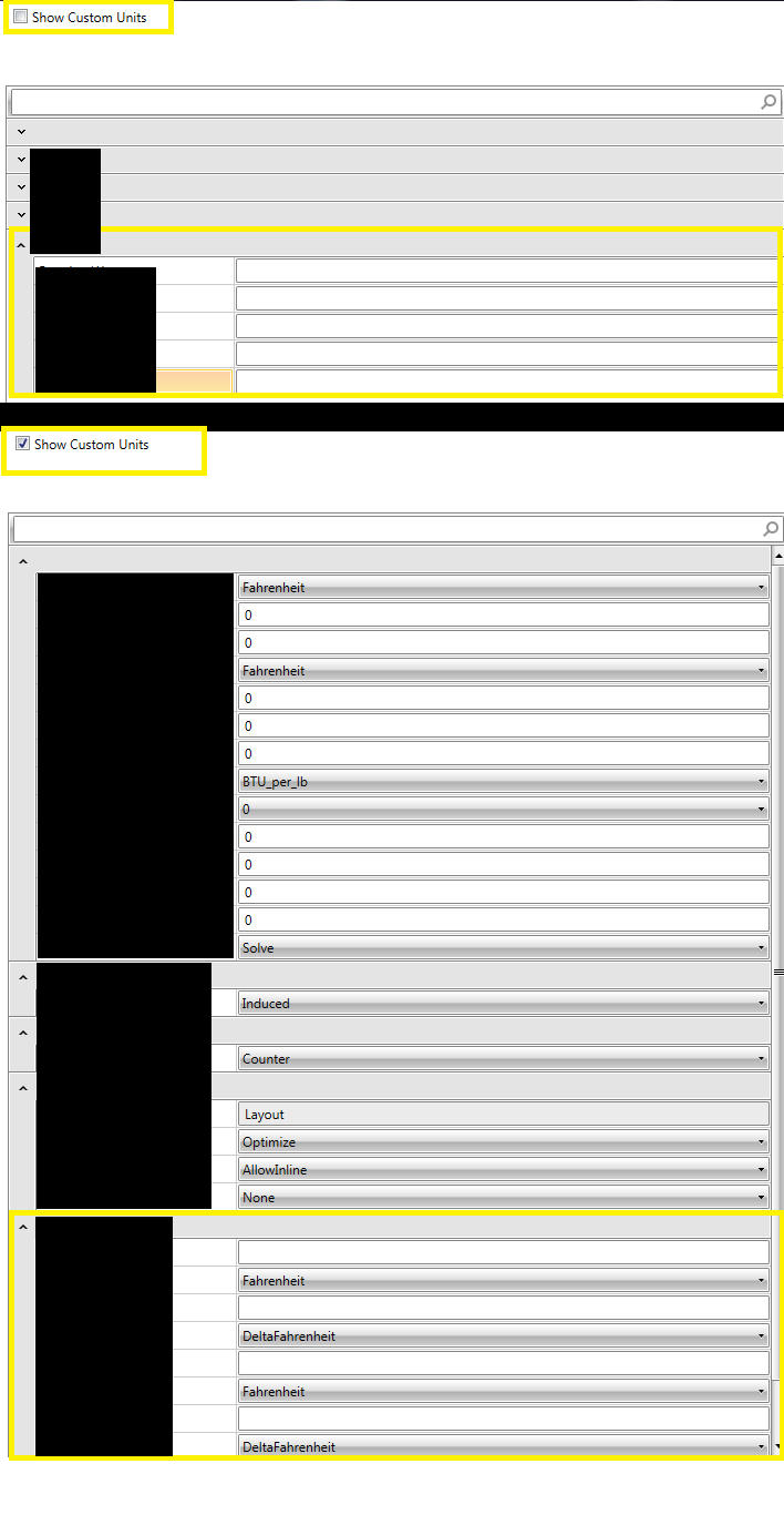 (Image attached: all that should change is in the yellow highlights. I click a checkbox and add new fields. In the lower image, all the groups suddenly expand when the form is refreshed.