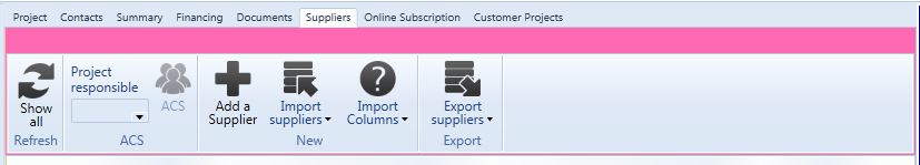 In my program it looks like this (see attached file). The top row of tabs ("Project", "Contacts"... are not part of this problem, my problem is on a radribbonview inside the "Suppliers" tab).