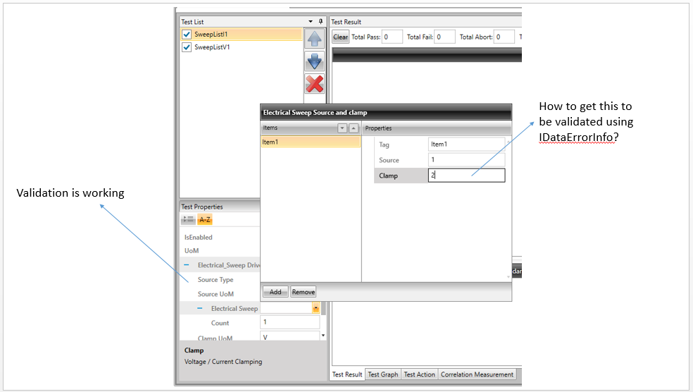 The validation is working alright with viewmodel bound to PropertyGrid. But it is not working when it is bound to CollectionEditor. (See attached picture)