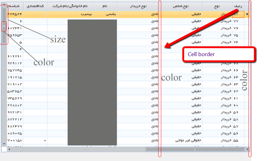 radGridView1.TableElement.VScrollBar.MinSize = new Size(30, 0);You can also change the BorderColor property of RadGridView. Here is the code snippet how to achieve it: