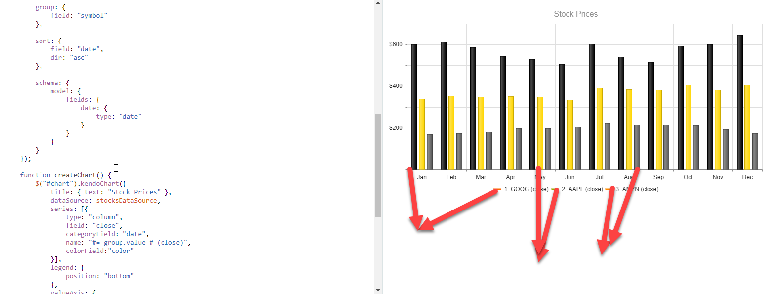 when i user colorField and user group in DataSource the color result is different like image i attached