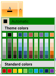 <telerik:RadColorPicker.ColorSelectorStyle> <Style TargetType="telerik:RadColorSelector"> <Setter Property="Background" Value="Green"/> </Style> </telerik:RadColorPicker.ColorSelectorStyle>This will produce the following result when the Offce_Black theme is applied to the RadColorPicker control: