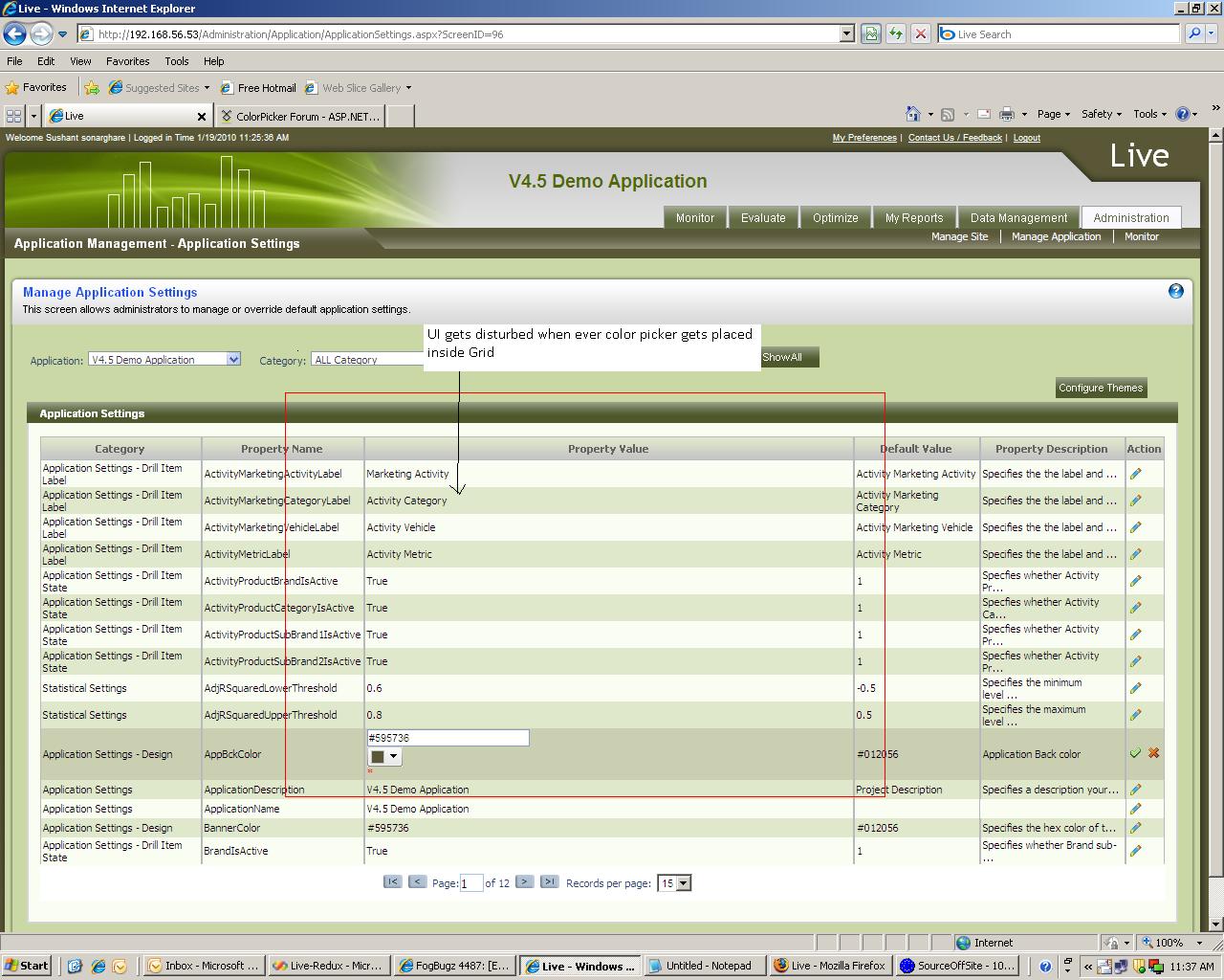 I have used Color Picker in above mentioned code with Default Skin. When ever any row with Color Picker trys to edit, it distorted the UI(See Attached jif image). It is happening in all browsers. Can you please help me in this?