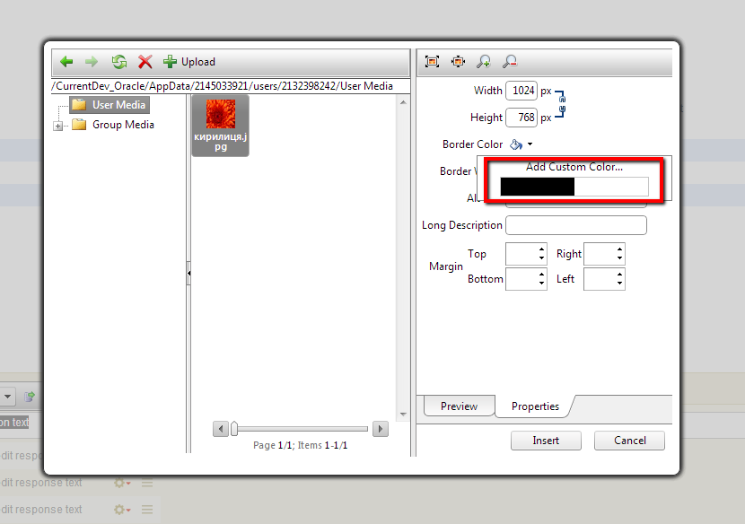 We have been using Telerik ASP.NET AJAX controls version 2012.2.912.40. We met the issue with color picker inside image manager properties pane. It doesn't contain color palette, please see attached image.