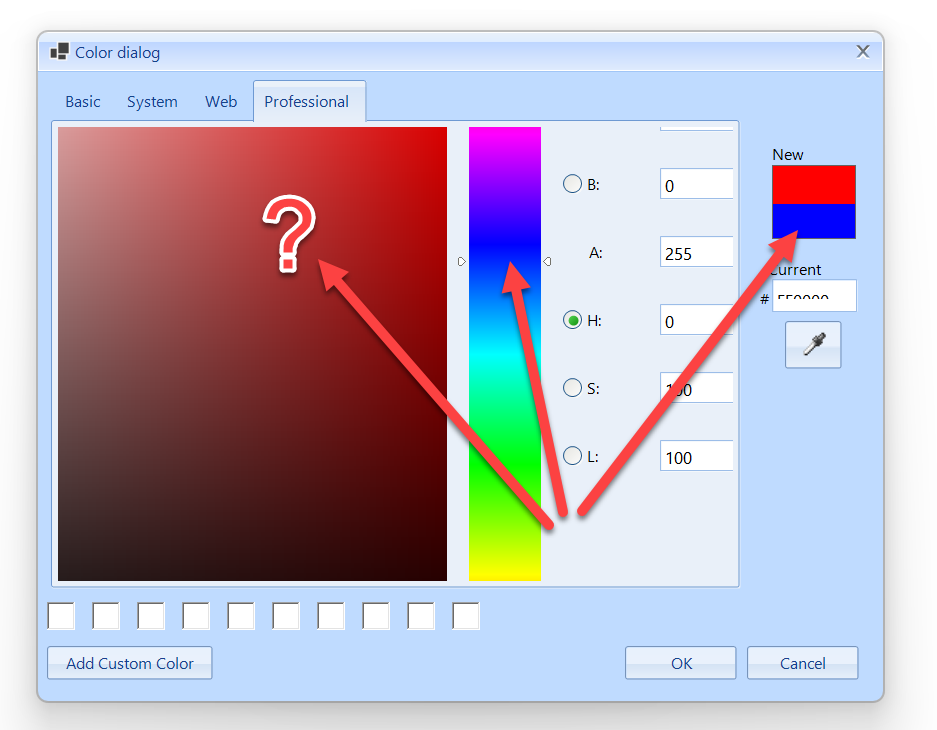 As for the other questions, you are right the RadColorDialog elements location is messed up when the monitor that main form where the applications start has a higher DPI than 100%. I have searched our backlog and found that this behavior is already logged. You can follow the item to receive status changes so that you can be aware of its progress.  I have added your scenario to the feedback and increased its priority so that our team could consider adding this to their planning.