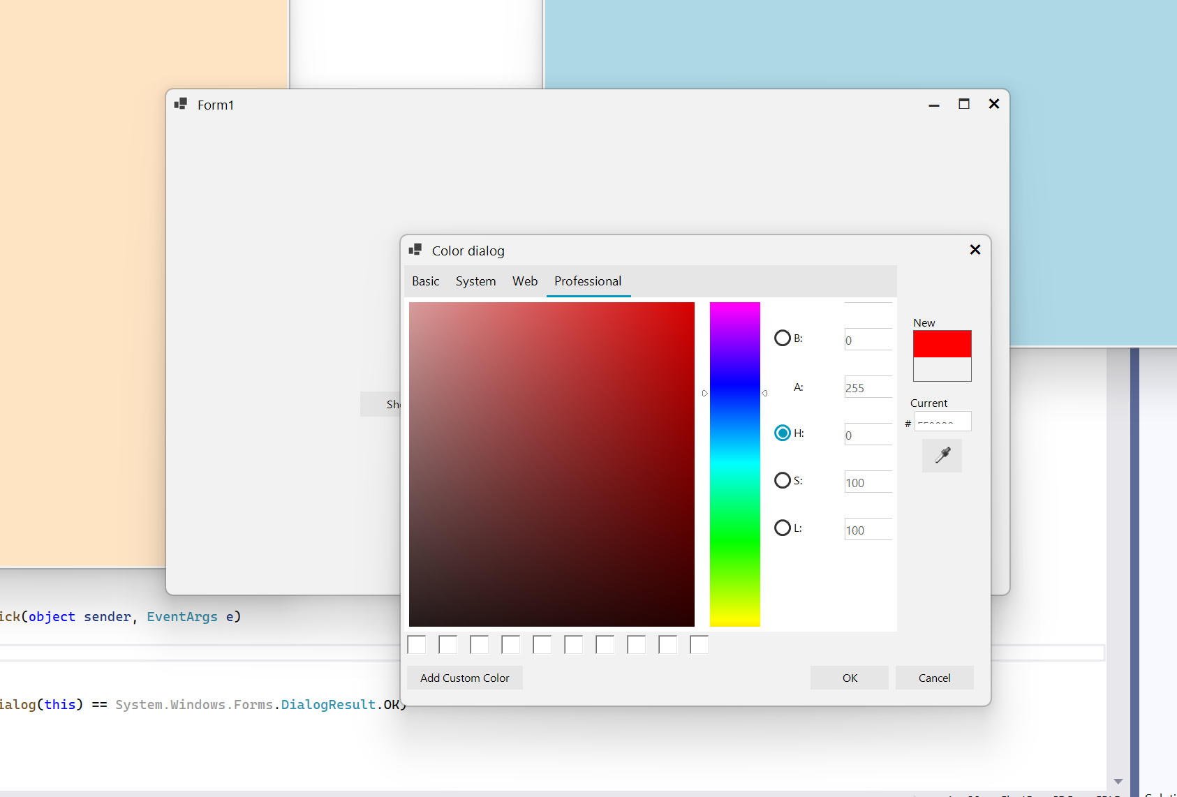 radColorDialog.ColorDialogForm.OldColor = Color.Bisque;