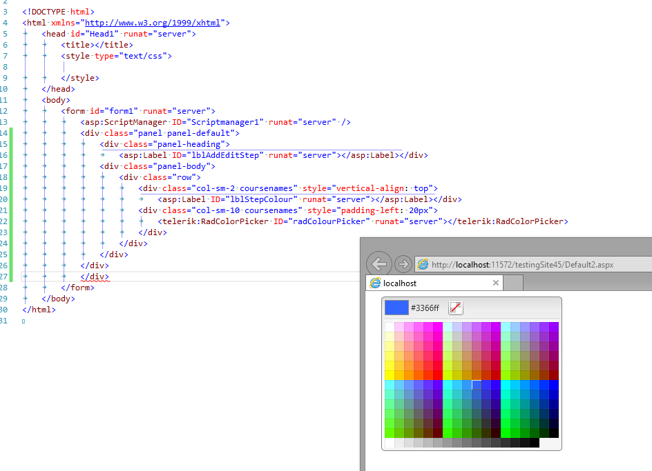 <telerik:RadColorPicker ID="radColourPicker" runat="server"></telerik:RadColorPicker>