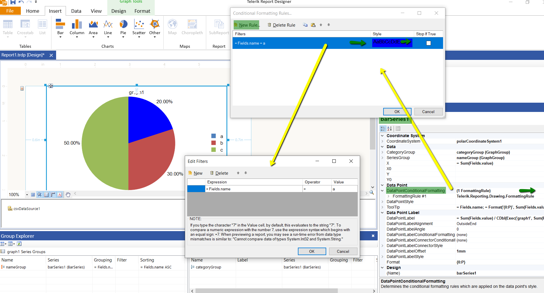 May I please know if we can assign custom colour to each series in Pie-Chart. Sometimes if there are 4 series expected such as Satisfied/Extremely satisfied/Dissatisfied/Extremely dissatisfied but the records returned are only 2 rows one for each series, then if I use colour pallete the first series gets mapped to the first colour in colour pallete.
