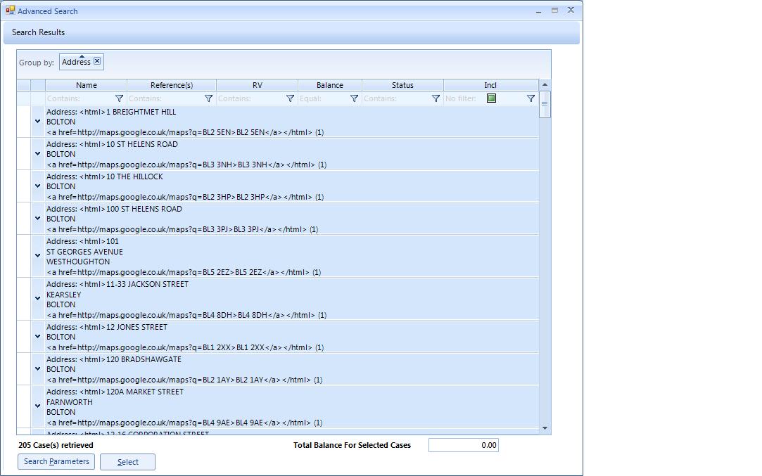 Is this HTML in your source data? If so, then this will show up as you have demonstrated. If your source data does not contain HTML, and you are formatting your source string with HTML using the CellFormatting event, then the grouped column will not show the HTML.