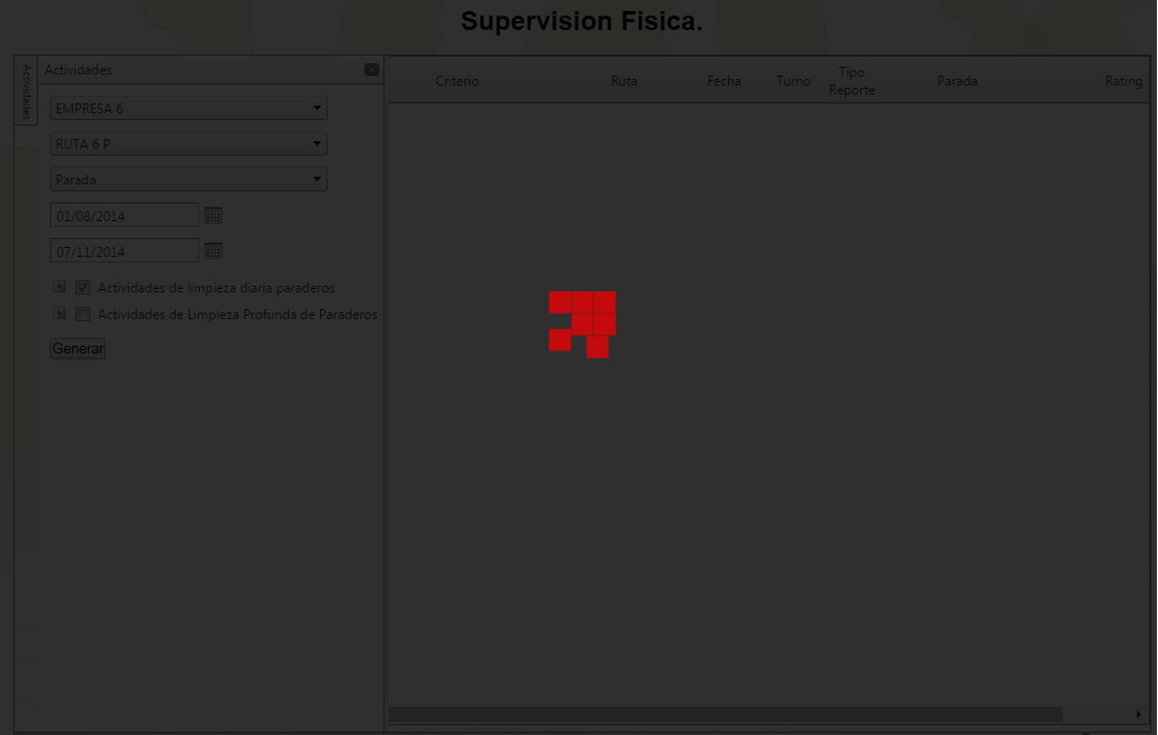 01.<asp:Panel runat="server" ID="pnlPrueba">02. 03. 04. 05. 06. <asp:UpdatePanel ID="UpdatePanel1" runat="server" UpdateMode="Always">07. <Triggers>08. <asp:AsyncPostBackTrigger ControlID="btnGenerar" EventName="Click" />09. 10. </Triggers>11. <ContentTemplate12. 13. <asp:Panel ID="pnlProgress" runat="server" CssClass="pnlcarga">14. <img src="images/OperacionRuta/loader.GIF" class="imgcarga" />15. </asp:Panel>16. <asp:UpdateProgress ID="updProgress" runat="server" ViewStateMode="Inherit" DynamicLayout="true">17. <ProgressTemplate>18. </ProgressTemplate>19. </asp:UpdateProgress>20. 21. <telerik:RadGrid ID="rgvReporte" runat="server" AutoGenerateColumns="false" OnNeedDataSource="rgvReporte_NeedDataSource" Height="600px" OnItemDataBound="rgvReporte_ItemDataBound" AllowSorting="true">22. <ClientSettings>23. <Scrolling AllowScroll="true" UseStaticHeaders="true" />24. <Animation AllowColumnReorderAnimation="true" />25. </ClientSettings>26. <MasterTableView DataKeyNames="IdActividad,Color">27. <Columns>28. <telerik:GridBoundColumn HeaderText="Calificación" AllowSorting="true" DataType="System.Char" DataField="Calificacion" UniqueName="Calificacion" HeaderStyle-HorizontalAlign="Center" HeaderStyle-VerticalAlign="Middle" ItemStyle-HorizontalAlign="Center" ItemStyle-Width="70px" HeaderStyle-Width="70px" />29. <telerik:GridBoundColumn HeaderText="Actividad" AllowSorting="true" DataType="System.Char" DataField="Detalle" UniqueName="Detalle" HeaderStyle-HorizontalAlign="Center" HeaderStyle-VerticalAlign="Middle" ItemStyle-HorizontalAlign="Center" ItemStyle-Width="200px" HeaderStyle-Width="200px" />30. <telerik:GridBoundColumn HeaderText="Criterio" AllowSorting="true" DataType="System.Char" DataField="Criterio" UniqueName="Criterio" HeaderStyle-HorizontalAlign="Center" HeaderStyle-VerticalAlign="Middle" ItemStyle-HorizontalAlign="Center" ItemStyle-Width="200px" HeaderStyle-Width="200px" />31. <telerik:GridBoundColumn HeaderText="Ruta" AllowSorting="true" DataType="System.Char" DataField="NombreRuta" UniqueName="NombreRuta" HeaderStyle-HorizontalAlign="Center" HeaderStyle-VerticalAlign="Middle" ItemStyle-HorizontalAlign="Center" ItemStyle-Width="100px" HeaderStyle-Width="100px" />32. <telerik:GridBoundColumn HeaderText="Fecha" AllowSorting="true" DataType="System.DateTime" DataField="Fecha" UniqueName="Fecha" HeaderStyle-HorizontalAlign="Center" HeaderStyle-VerticalAlign="Middle" ItemStyle-HorizontalAlign="Center" DataFormatString="{0:dd/MM/yyyy}" ItemStyle-Width="80px" HeaderStyle-Width="80px" />33. <telerik:GridBoundColumn HeaderText="Turno" AllowSorting="true" DataType="System.Char" DataField="Turno" UniqueName="Turno" HeaderStyle-HorizontalAlign="Center" HeaderStyle-VerticalAlign="Middle" ItemStyle-HorizontalAlign="Center" ItemStyle-Width="40px" HeaderStyle-Width="40px" />34. <telerik:GridBoundColumn HeaderText="Tipo Reporte" AllowSorting="true" DataType="System.Char" DataField="DetalleTipo" UniqueName="DetalleTipo" HeaderStyle-HorizontalAlign="Center" HeaderStyle-VerticalAlign="Middle" ItemStyle-HorizontalAlign="Center" ItemStyle-Width="70px" HeaderStyle-Width="70px" />35. <telerik:GridBoundColumn HeaderText="Parada" AllowSorting="true" DataType="System.Char" DataField="NombrePAradero" UniqueName="NombrePAradero" HeaderStyle-HorizontalAlign="Center" HeaderStyle-VerticalAlign="Middle" ItemStyle-HorizontalAlign="Center" ItemStyle-Width="120px" HeaderStyle-Width="120px" />36. <telerik:GridBoundColumn HeaderText="Unidad" AllowSorting="true" DataType="System.Char" DataField="NumeroUnidad" UniqueName="NombreUnidad" HeaderStyle-HorizontalAlign="Center" HeaderStyle-VerticalAlign="Middle" ItemStyle-HorizontalAlign="Center" ItemStyle-Width="70px" HeaderStyle-Width="70px" />37. <telerik:GridRatingColumn HeaderText="Rating" AllowRatingInViewMode="true" DataField="ValorCalificacion" ItemStyle-Width="165px" HeaderStyle-Width="180px" HeaderStyle-HorizontalAlign="Center" ItemStyle-HorizontalAlign="Center"></telerik:GridRatingColumn>38. </Columns>39. </MasterTableView>40. 41. </telerik:RadGrid>42. </ContentTemplate>43. </asp:UpdatePanel>44. </asp:Panel>