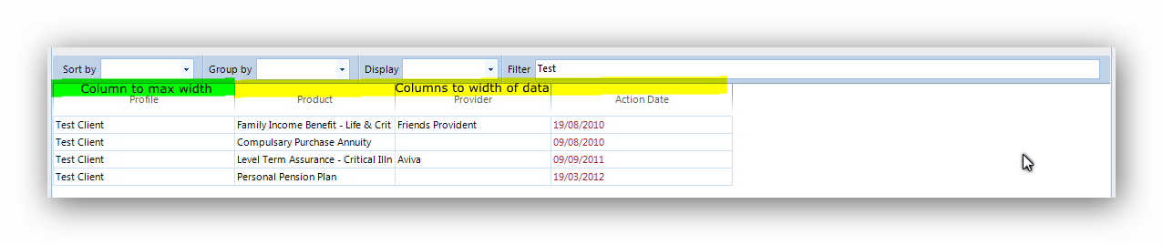 In the attached image is there a way to set columns 2,3 & 4 width to the longest field value and first column to a max of the remaining listview width thus removing the white space to the right?