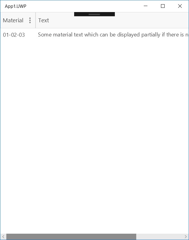 <grid:RadDataGrid x:Name="grid" ItemsSource="{Binding Items}" SelectionMode="None" UserSortMode="Single" UserEditMode="None" UserFilterMode="Disabled" GridLinesVisibility="Both" AutoGenerateColumns="False" SizeChanged="Grid_SizeChanged"> <grid:RadDataGrid.Columns> <grid:DataGridTimeColumn SizeMode="Fixed" Width="100" PropertyName="Time"/> <grid:DataGridTemplateColumn HeaderText="Title" SizeMode="Fixed"> <grid:DataGridTemplateColumn.CellContentTemplate> <DataTemplate> <Label Text="{Binding Title}" Margin="10" HorizontalOptions="Start" LineBreakMode="WordWrap"/> </DataTemplate> </grid:DataGridTemplateColumn.CellContentTemplate> </grid:DataGridTemplateColumn> <grid:DataGridNumericalColumn PropertyName="Author" Width="100" SizeMode="Fixed"/> </grid:RadDataGrid.Columns></grid:RadDataGrid>and the event handler: