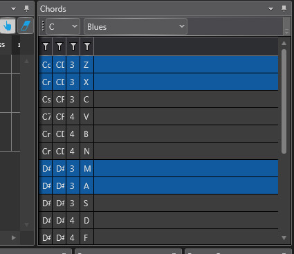 <telerik:RadGridView Grid.Row="1" ColumnWidth="*" VerticalAlignment="Stretch" HorizontalAlignment="Stretch" ShowGroupPanel="False" AutoGenerateColumns="False" CanUserInsertRows="False" CanUserDeleteRows="False" CanUserReorderColumns="False" ShowColumnHeaders="True" CanUserSortColumns="False" RowIndicatorVisibility="Collapsed"> <telerik:RadGridView.Columns> <telerik:GridViewDataColumn DataMemberBinding="{Binding Title, Mode=OneWay}" IsReadOnly="True" Header="Chord" /> <telerik:GridViewDataColumn DataMemberBinding="{Binding DisplayNotes, Mode=OneWay}" IsReadOnly="True" Header="Notes" /> <telerik:GridViewDataColumn DataMemberBinding="{Binding NumNotes, Mode=OneWay}" IsReadOnly="True" Header="Notes"/> <telerik:GridViewDataColumn DataMemberBinding="{Binding PlayKey, Mode=OneWay}" IsReadOnly="True" Header="Play"/> </telerik:RadGridView.Columns></telerik:RadGridView>