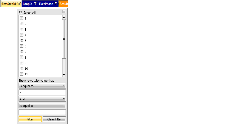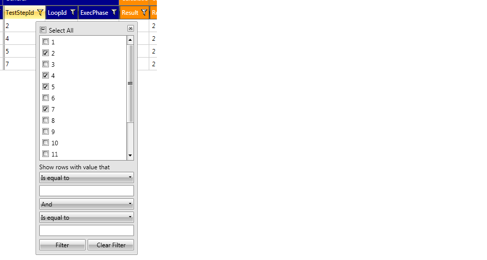 When I try to search for value in selected column with Filter pop up, on selected column,