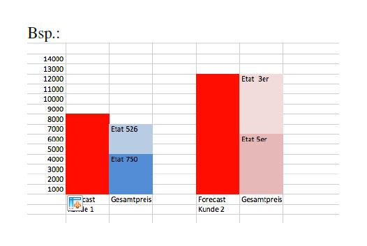 I am trying to achieve a combination of a stacked and unstacked Columnchart as shown in the screenshot.