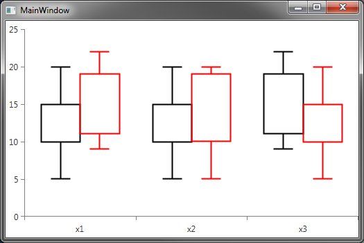However I also needed to use a ChartSeriesProvider , which does not support RangeBarSeries. In the end I used a set of BarSeries layered on top of each other and styled to look like a candlestick, using hidden axis provided by the bound object to get the required behaviour of clustering with a dynamic number of series.
