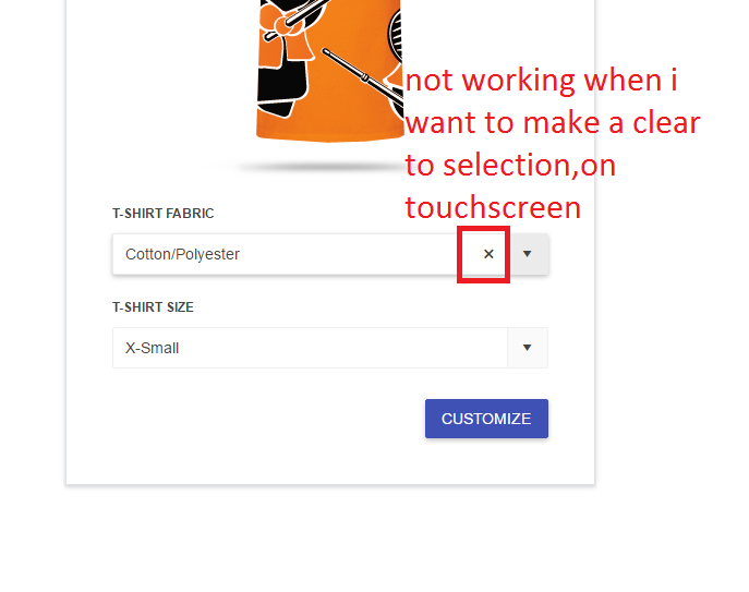 I select the cotton,now will show me the cotton is selected,is all fine until here and now i want to clear my selection pressed "X"button,with mouse on pc working but if u are on Ipad(touchscreen) doesnt work the button "X"