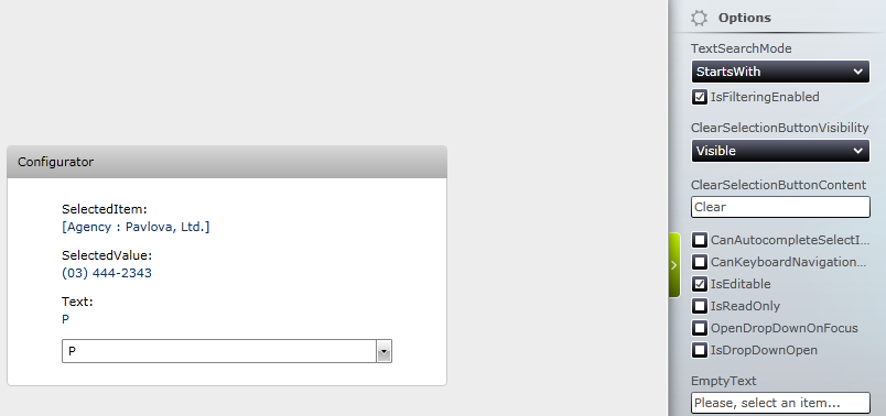 For example, with your demo (configurator), I typed 'pa' then I delete the 'a' character. Why the 'Pavlova' agency is still selected ? (cf screenshot in attachment).